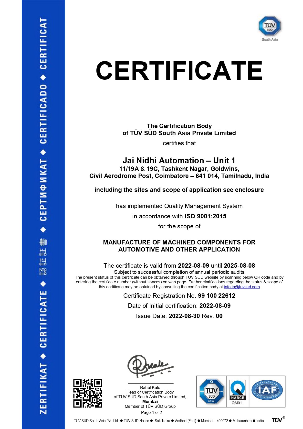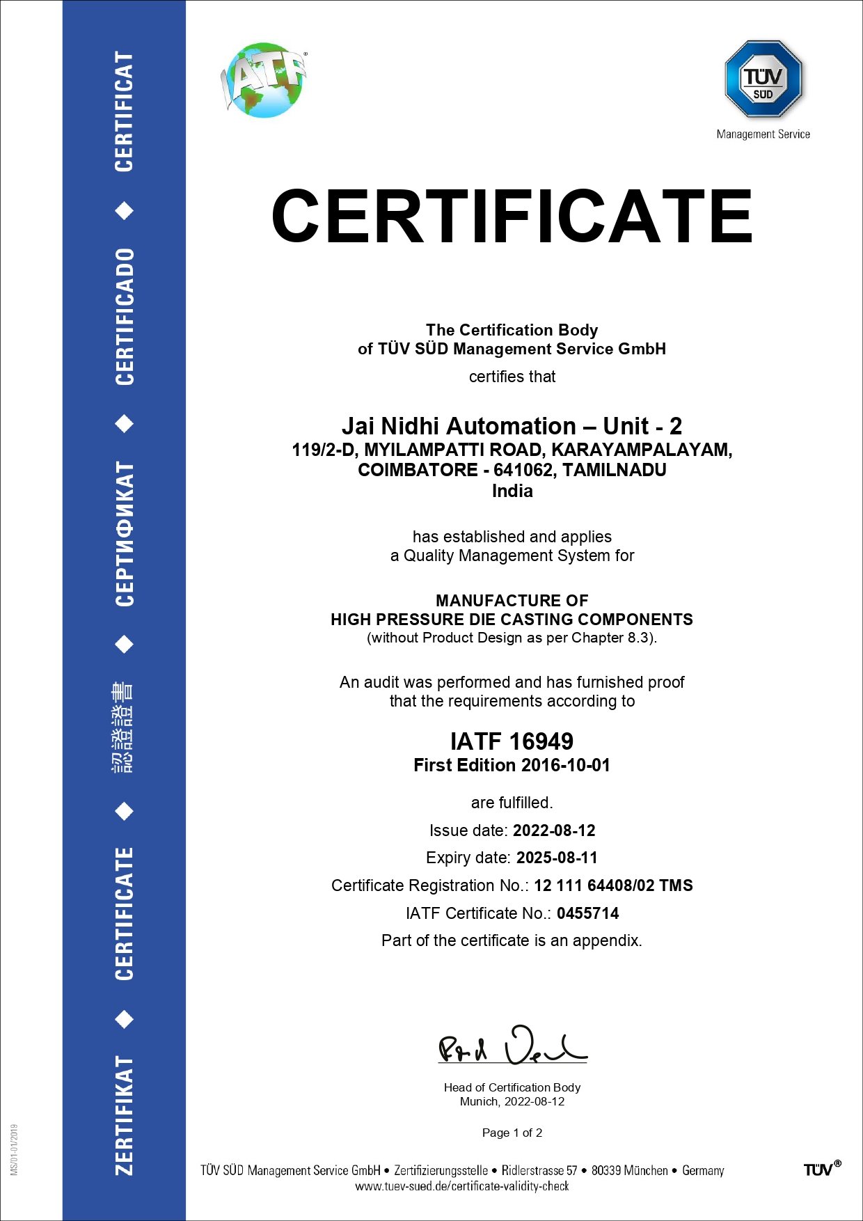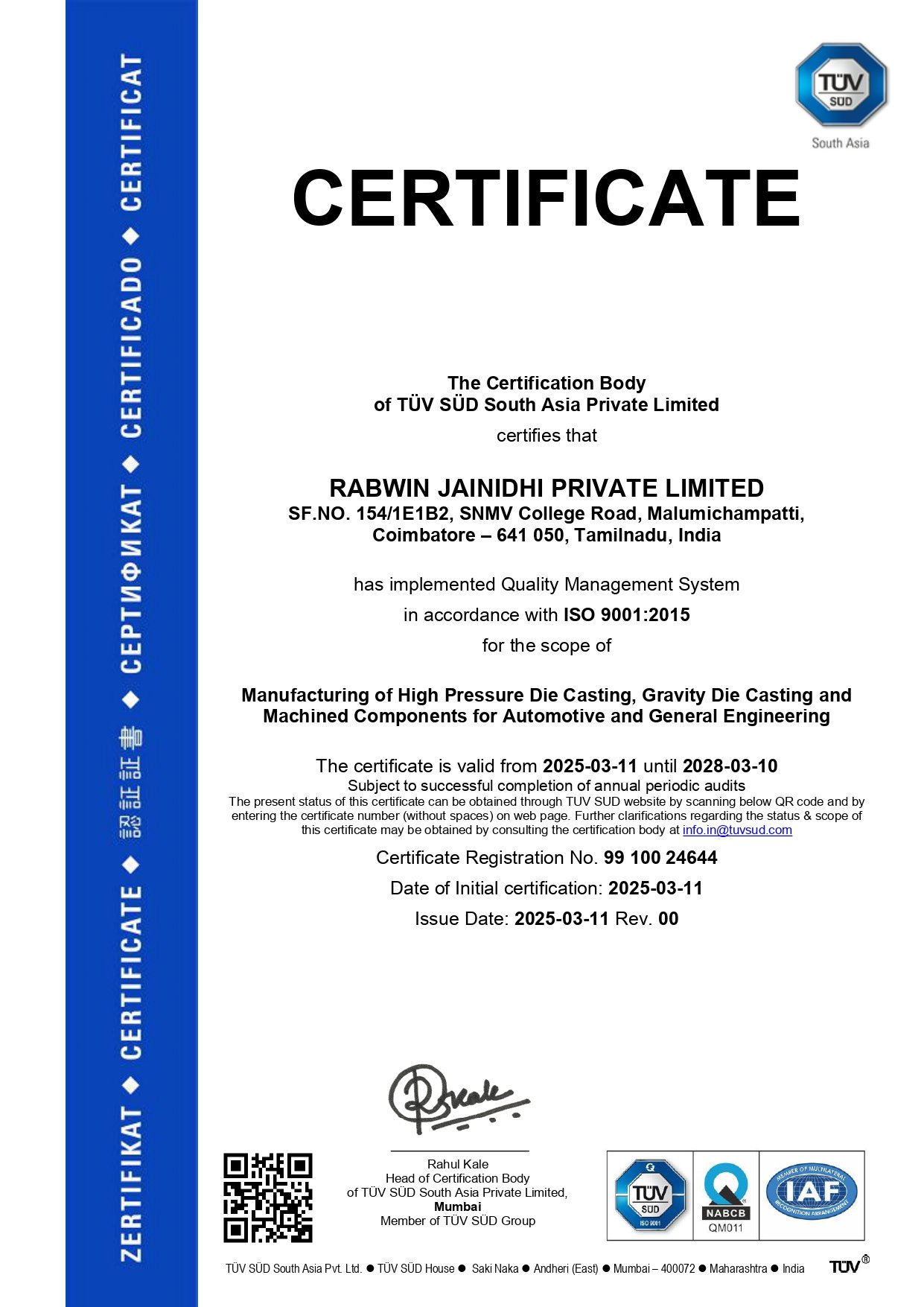Established in 2011 as a Proprietrix company under the name of Jai Nidhi Automation, renamed as Rabwin Jainidhi Pvt Ltd. in the year 2024, the company specializes in manufacturing high-quality aluminium alloy components using High Pressure Die Casting (HPDC) and Gravity Die Casting (GDC) processes with national and international grade alloys. Our state-of-the-art facility includes a fully equipped machine shop featuring Turning Centers, Vertical Machining Centers along with conventional Special Purpose Machines (SPMs) for high-volume production.